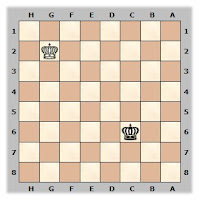 Actually I should say crazy opponent. No, I take that back, he's not crazy.. .just a snot-faced dirtbag. We reached a K and P ending that had been an obvious draw for 10 moves or so but because he outrated me by 100 points, I thought it was only good etiquette to allow him to offer the draw. When it became apparent he wasn't going to make the offer, I offered one, but he refused. I figured it did not matter because as soon as we reached an ending with lone Kings it would be an automatic draw. Here's the position: